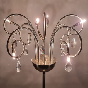 Deze Refurbished is ontwikkeld door het merk Ben Demmers. Omdat onze Refurbishedlampen niet na te bestellen zijn (het zijn unica modellen) hebben we deze een eigen uniek nummer gegeven, van deze beauty is dat 39. De lamp past met zijn RVS kleur perfect in een klassiek interieur. De van Ben Demmers is uitgevoerd met G4-fitting(en) en wordt geleverd met lichtbron. De lamp heeft 9 lichtpunt(en).