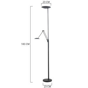 De New Roma is ontwikkeld door het merk Highlight. Het artikelnummer van deze prachtige vloerlamp is V4004.01. De lamp past met haar zwarte kleur perfect in een modern interieur. De vloerlamp New Roma is uitgevoerd met een Geïntegreerde LED-fitting(en) en wordt geleverd met lichtbron. De lamp heeft 2 lichtpunt(en). .