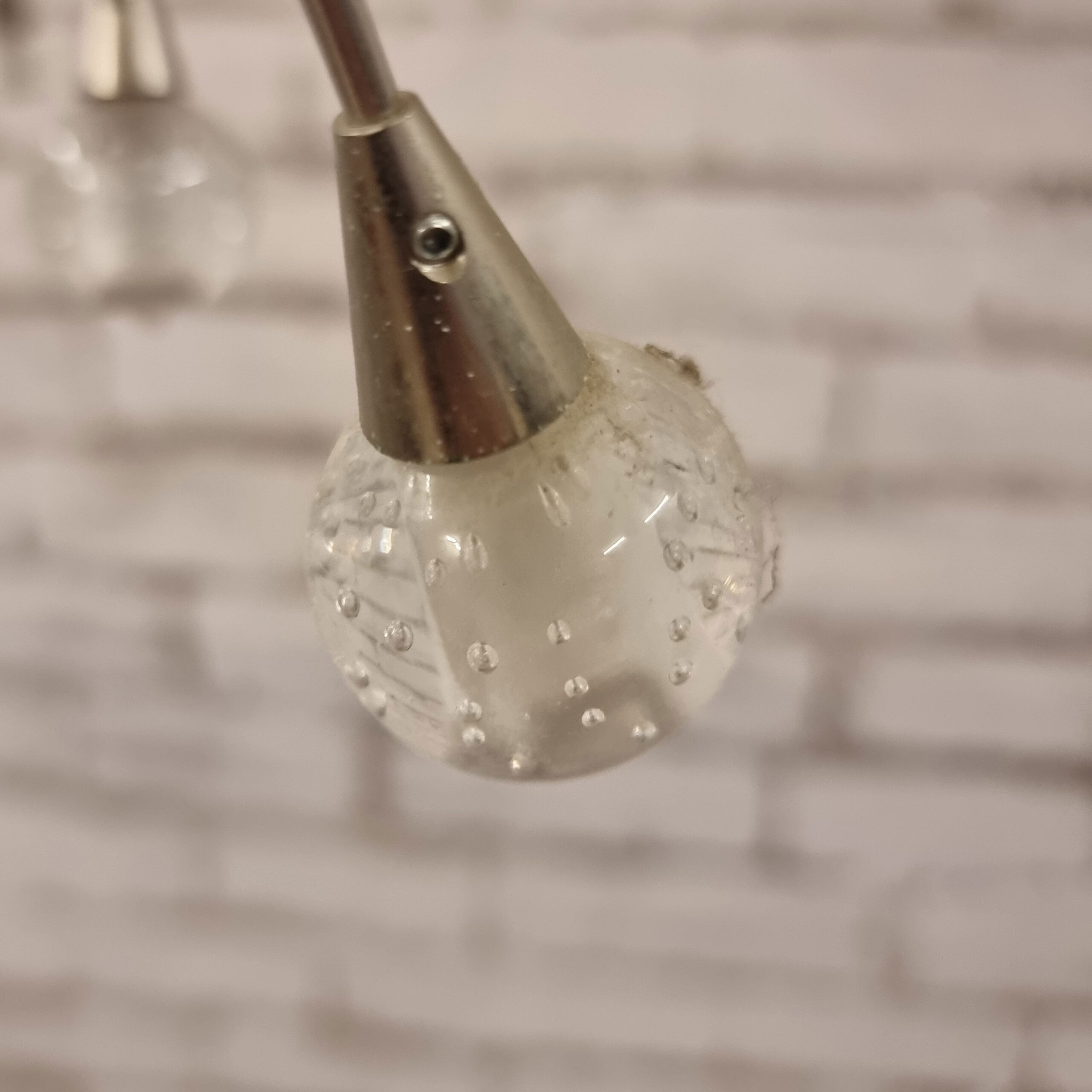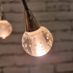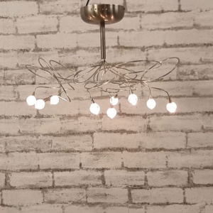 Decoratieve plafond lamp voorzien van 5 Watt halogeen lampjes en decoratieve glas bolletjes.